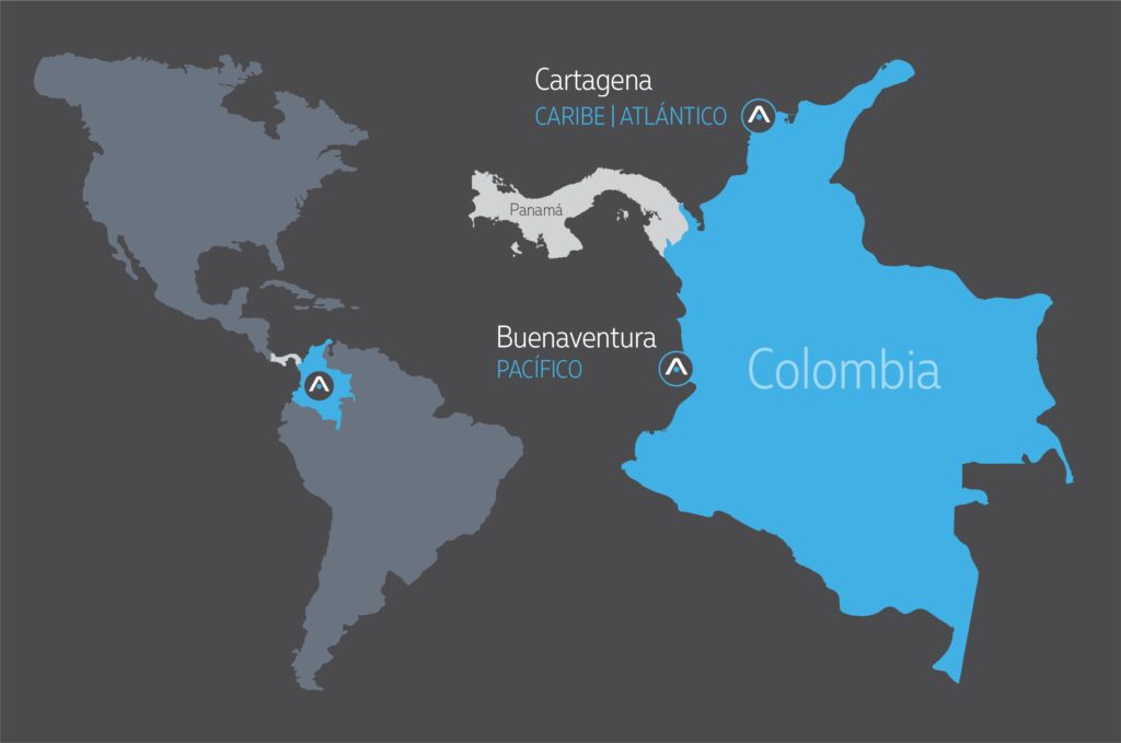 Con sede en Colombia tenemos acceso natural a dos océanos: Atlántico (Caribe) y Pacífico, beneficiándonos de la mejor conectividad marítima de Sudamérica y la segunda en Latinoamérica, tan solo superado por Panamá.